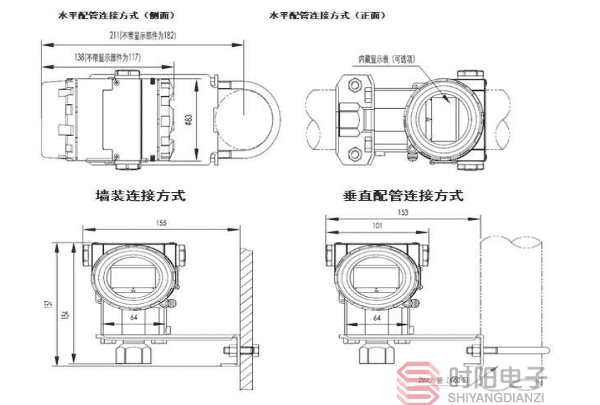 安装位置影响 | 与膜片面平行方向的安装位置变化不会造成零漂影响,若安装位置与膜片面超过90°的变化,量程C有<0.25kPa范围内的零位漂移,其它量程有<0.15kPa范围内的零位影响,均可以通过调节调零校正。无量程影响。 |