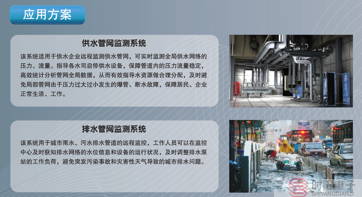 随着城市化、工业自动化步伐的加速,起支撑作用的管网系统(如供水系统、排水系统、城市天然气系统、野外石油天然气平台、石油开采等)工程系统建设日益庞大,各管网监测点分布范围广、数量多、甚至地处偏僻、环境恶劣。因此采用传统有线方式通信的监测系统同建设难度大,周期长、造价高、运营成本高、系统响应慢,处理效率低。